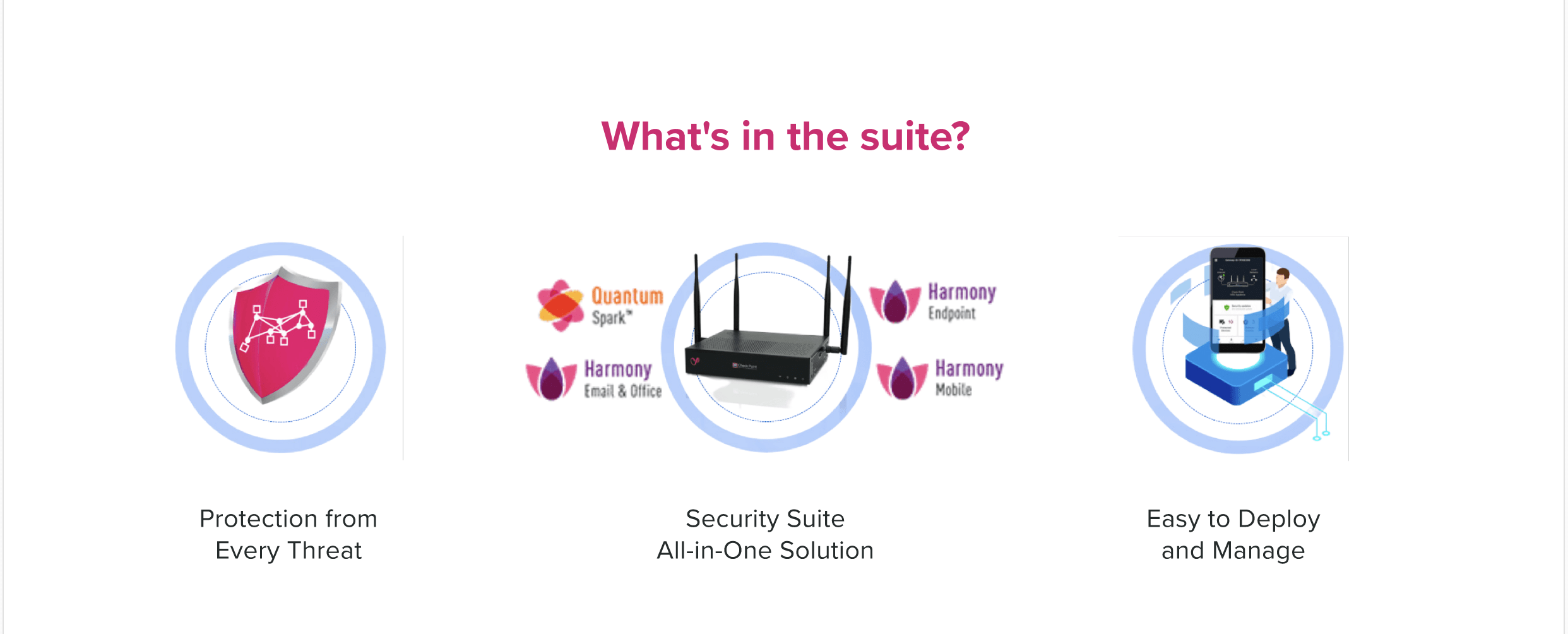 At the heart of the suite, is Quantum Spark, our lineup of Next Generation Firewalls for small and medium size businesses. Quantum Spark powers the Security Suite, featuring best-in-class threat protection, is easy to deploy and manage, and integrates communication and security into an “all in one” security gateway.
